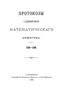 - Протоколы С.-Петербургского математического общества. СПб. — 1899, 132 с..