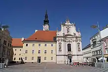 - Ратушная площадь. Центр старого города. Посреди площади — колонна Святой Троицы (1782).