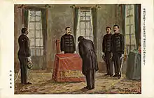 Сано Цунэтами получает разрешение на открытие общества от принца Арисугавы Тарухито.