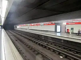 Станция имеет 2 боковые платформы длиной 99 метров каждая.[1]