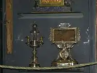 - ковчег с двумя шипами из тернового венца Иисуса Христа ― справа вверху витрины,