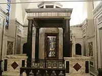 Цилиндрический свод и киворий из мрамора и позолоченной бронзы над главным престолом были созданы в XVIII веке. Под главным престолом находится старинная рака, в которой находятся мощи мучеников Анастасия Персянина и дьякона Кесария[18].