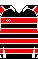 - Основная форма команды: чёрные футболки с белой лицевой стороной, на которой изображены горизонтальные чёрные и красные полоски, чёрные трусы и гетры.
