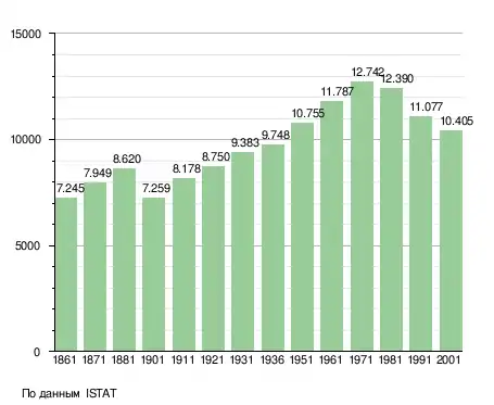 Население составляет 8 935 человек (2019 г.), плотность населения составляет 889,94 чел./км². Занимает площадь 10,04 км². Почтовый индекс — 16038. Телефонный код — 0185.