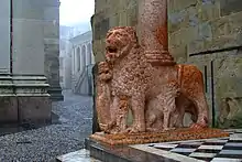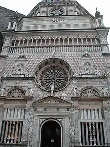 ![]() Северный фасад базилики. Ворота розовых львов и капелла Коллеони | |