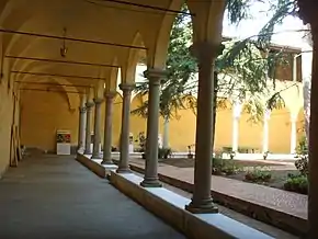 В трех люнетах галереи внутреннего дворика частично сохранились фрески начала XVII века — остатки цикла росписей, посвященного жизни Христа и историям из житий святых-кармелитов[16].