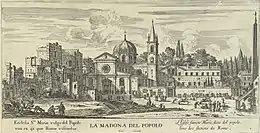 Название церкви происходит от наименования «Площади народа» Пьяцца-дель-Пополо, основанной в конце XVI века и оформленной архитектором Джузеппе Валадье в 1811—1822-х годах. Название площади, в свою очередь, происходит от тополиной рощи, прежде росшей на этом месте у гробницы императора Нерона. Слова «тополь» (лат. populus) и «народ» являются в латинском языке омонимами. Эта версия исходит из народной легенды о том, что призрак покончившего собой императора Нерона посещает место своей гробницы по ночам. Гробница была разорена (археологи в 2000-х годах обнаружили её остатки за алтарём под полом церкви).