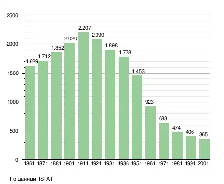 Население составляет 312 человека (2008 г.), плотность населения составляет 8 чел./км². Занимает площадь 40 км². Почтовый индекс — 65020. Телефонный код — 085.