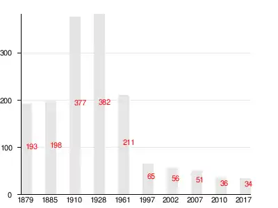 Число жителей по семейным спискам 1879 г.: 94 м. п., 99 ж. п.; по приходским сведениям 1879 г.: 85 м. п., 93 ж. п[3].