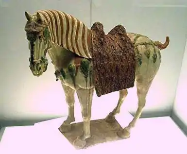 Лошадь из керамики сань-цай, династия Тан, VII—VIII вв.