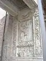 Левая стена базилики непосредственно примыкает к античной Арке аргентариев (серебрянников), посвящённой Септимию Северу, его супруге Юлии Домне и их сыновьям Каракалле и Гете, и украшенной их рельефными изображениями. Придя к власти, Каракалла убил своего брата и приказал уничтожить все изображения последнего, вследствие чего фигура Геты на арке сбита.
