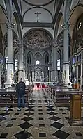 Интерьер церкви имеет три нефа (без трансепта) и деамбулаторий с венцом капелл. Пространство церкви светло и «прозрачно» благодаря огромным окнам апсидиол и круглым опорам, разделяющим нефы, так, что интерьер кажется зальным. От четырёх опор, восьмигранных в нижней части, расходятся веерные своды[4]. В полузатопленной крипте церкви хранятся останки восьми дожей, правивших с 836 по 1172 годы. В главном алтаре возвышается архитектонический табернакль, предположительно работы Алессандро Витториа, захоронение которого находится также в этой церкви у левой стены.