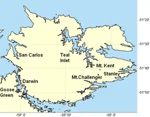 Сан-Карлос был главным британским плацдармом во время Фолклендской войны, в военных сообщениях он фигурировал под кодовым названием «Голубой пляж» (Blue Beach).