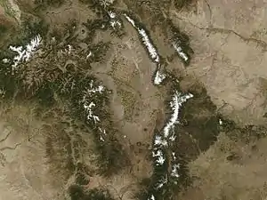 Спутниковый снимок долины Сан-Луис и прилегающих территорий