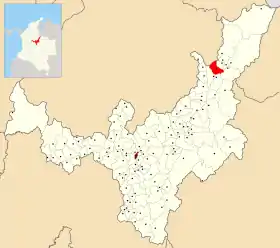 Город расположен в северо-восточной части департамента, в гористой местности Восточной Кордильеры, к востоку от реки Чикамоча, на расстоянии приблизительно 125 километров к северо-востоку от города Тунха, административного центра департамента. Абсолютная высота — 2223 метра над уровнем моря[2].