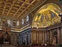 Мозаика конхи апсиды создана в 1220—1227 годах во время понтификата Гонория III с привлечением мастеров, которые работали над мозаиками собора Сан-Марко в Венеции. В центре изображена фигура Христа-Искупителя (Cristo del Redentore), восседающего на троне с раскрытым Евангелием в левой руке и благословляющего правой. У Его ног маленькая коленопреклонённая фигурка Папы Гонория III, заказчика мозаики. По сторонам — две пальмы (символ Рая), фигуры святых Петра, Павла, Андрея и Луки.