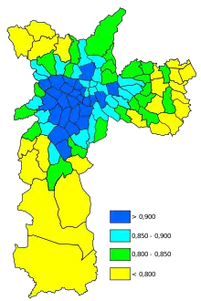 | 12 | Итайм-Паулиста | 21,7 км² | 358 888 | 28 | Сан-Мигел-Паулиста | 24,3 км² | 377 540 | |