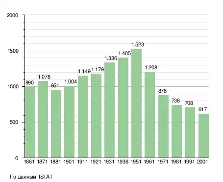 Население составляет 575 человек (2008 г.), плотность населения составляет 58 чел./км². Занимает площадь 10 км². Почтовый индекс — 89020. Телефонный код — 0966.