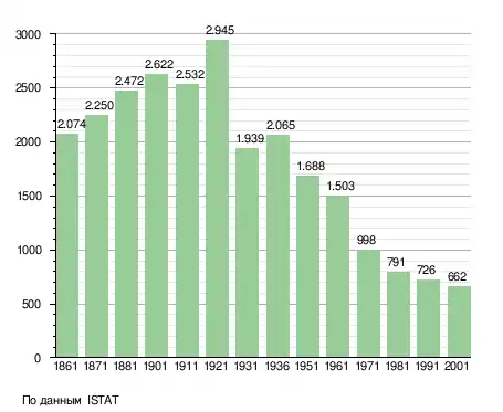 Население составляет 662 человека (2008 г.), плотность населения составляет 15 чел./км². Занимает площадь 45 км². Почтовый индекс — 86088. Телефонный код — 0865.