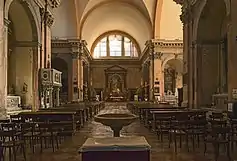 Церковь построена в форме латинского креста и состоит из одного нефа с боковыми капеллами (часовнями). Особенность внутреннего устройства в том, что расположение здания предыдущей обрушившейся церкви совпадает с трансептом современного здания.