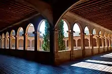 К церкви пристроено здание монастырской библиотеки (1599). За ним находится внутренний двор, окружённый аркадой. Колонны клуатра украшены причудливой сюжетной резьбой.