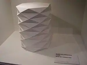Высота цилиндра делится плоскостями, параллельными основаниям, на равных частей. В образовавшиеся сечения (окружности) вписываются правильные -угольники, причём соседние -угольники повёрнуты относительно друг друга на угол чтобы вершины вышележащего -угольника находились над серединами сторон нижележащего -угольника. Затем вершины -угольников соединяются так, что образуется поверхность из треугольников; каждый её «слой» — антипризма. Полученная многогранная поверхность называется сапогом Шварца.