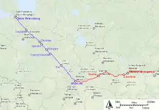 Чудово[61], Окуловка, Тверь, Москва (Курский вокзал), Владимир, Дзержинск |