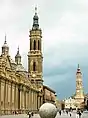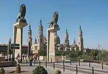 - Базилика Нуэстра-Синьора-дель-Пилар — крупнейшая церковь Испании в стиле барокко, один из символов Сарагосы. Первоначально на этом месте первыми христианами была установлена часовня. В 40 году Богородица явилась апостолу Иакову около колонны Пилар. Базилика считается старейшим и самым почитаемым храмом в честь Девы Марии в Испании, а сама Дева Пилар — покровительницей Сарагосы. Внутри базилики находятся фрески Гойи и Франсиско Байеу, также знаменитый алтарь работы Дамиена Формента (XVI век). Неподалеку от базилики находятся здания биржи Ла-Лонха, аюнтамиенто и дворец Епископа.