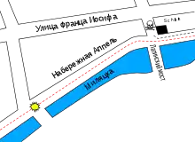 Узнав, что первая попытка убийства провалилась, Принцип решил совершить нападение на обратном пути эрцгерцога и сменил своё местоположение. Он занял позицию перед соседним продовольственным магазином «Деликатесы Морица Шиллера» неподалёку от Латинского моста[80].