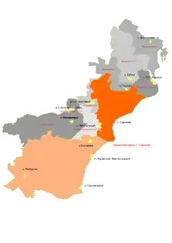 В Саратовский район до 2004 года входили 18 административных округов[28], изображённых на карте: