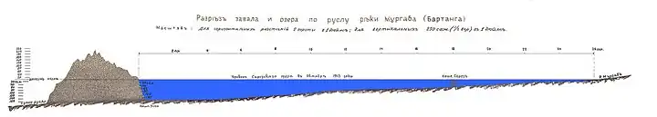 ![]() Естественная плотина на реке Мургаб. Справа — Сарезское озеро | |