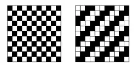 Отличается от других видов плетения ткани тем, что с каждой последующей нитью система пересечения нитей смещается на 1, 2 или более нитей, что придаёт ей характерный внешний вид «диагональ» (одно из обиходных названий). Данный вид плетения в середине XIX века взял за основу американский предприниматель Леви Страусс и разработал деним (джинсовую ткань)[1].