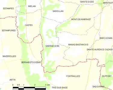 Коммуна расположена приблизительно в 630 км к югу от Парижа, в 95 км западнее Тулузы, в 38 км к юго-западу от Оша[1].
