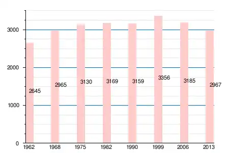 Население коммуны в 2011 году составляло 3017 человек[6], в 2012 году — 2961 человек[7], а в 2013-м — 2967 человек[5].