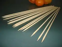 Шампуры являются ещё одной отличительной чертой сате. В абсолютном большинстве случаев они изготавливаются из затвердевших бамбуковых стеблей: из одного коленца бамбука толщиной со стакан выходит по меньшей мере несколько десятков подобных шпажек. В большинстве мест, где практикуется изготовление сате, существуют два основных типа бамбуковых шампуров: плоские либо круглые в сечении[22].