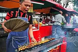 Однако наиболее заметную роль сате играет в уличной кухне. В Индонезии, Малайзии, Сингапуре, Брунее, а также в соответствующих регионах Таиланда и Филиппин миниатюрные шашлычки повсеместно продаются на традиционных рынках, а также с лотков и тележек торговцев, промышляющих в людных местах. В крупных городах некоторые из подобных мест на протяжении многих лет пользуются широкой общественной известностью именно как центры уличной продажи сате. Так, в Сингапуре более полувека — с конца 1940-х по середину 2000-х годов — существовал район сосредоточения уличных шашлычников, который со временем приобрёл название Satay Club и статус туристической достопримечательности[95]. Во всех упомянутых странах сате очень часто готовится в ходе пикников, народных гуляний, семейных, общинных и корпоративных мероприятий, проводимых на открытом воздухе[12][13][88].