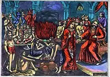 По одной из версий, Дакша не пригласил Шиву, поскольку не считал его богом. Потом Дакша не согласился с выбором дочери и поэтому отстранил Шиву от жертвоприношения. Оскорблённая Сати потребовала у жениха, чтобы он разрушил жертвоприношение. Не стерпев унижения, она бросилась в огонь и сгорела.
