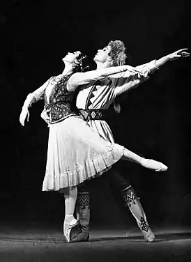 ![]() Ф. Саттаров в роли - Юмагул, Г. Сулейманова в роли Зайтунгул. Балет "Журавлиная песня" Степанова | |