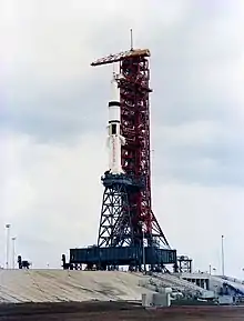 ![]() Ракета-носитель «Сатурн IB» на стартовом столе, миссия AS-202 | |