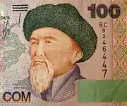- На лицевой стороне банкноты достоинством 100 сомов (2009 г.) изображён профиль Токтогула Сатылганова;