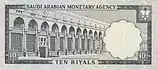 10 | 138×66 | зелёный | Герб Саудовской Аравии | Информация о золотом обеспечении купюры на арабском, урду, персидском, турецком и малайском языках | 1953 | |