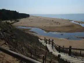 - Белая дюна. Является одной из красивейших прибрежных дюн Латвии с не менее прекрасным видом на Видземское побережье. Для этих целей обустроена особая смотровая площадка, где можно отдохнуть. От Белой дюны вдоль морского побережья создана пешеходная Тропа солнечного заката длиной 3,6 км. С белой дюны открывается вид на устье реки Инчупе (на фото).