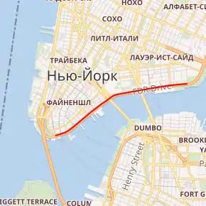 ![]() Саут-стрит проходит под магистралью ФДР | |