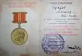 - Медаль «За доблестный труд в Великой Отечественной войне 1941—1945 гг.» (10.8.1946)