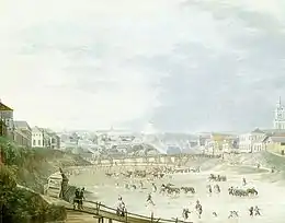 В 1858 году Сафонович, приняв соответствующее прошение за подписью 456 орловчан, ходатайствовал перед министерством внутренних дел о необходимости возобновления в Орле ярмарок, регулярно проходивших с 1839 по 1843 годы. Указом императора от 30 сентября 1858 года ежегодные ярмарки разрешались на двух площадях города — Рождественской (Курской) и Кромской — с дозволением «производить торговлю красными и другими товарами». Третья ярмарка на Полесской площади, однако, подлежала упразднению, так как на последней началось строительство Александринского института благородных девиц[26].