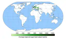 В XXI веке сахарную свёклу выращивают в основном в странах с умеренным климатом. По данным на 2015 год 12 % всего произведённого в мире сахара произведено из сахарной свёклы, 88 % — из сахарного тростника[2].