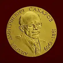 Андре́й Дми́триевич Са́харов (21 мая 1921, Москва — 14 декабря 1989, Москва) — советский физик-теоретик, академик АН СССР, один из создателей первой советской водородной бомбы. Общественный деятель, диссидент и правозащитник; народный депутат СССР, автор проекта конституции Союза Советских Республик Европы и Азии. Лауреат Нобелевской премии мира за 1975 год за сохранение мира.
