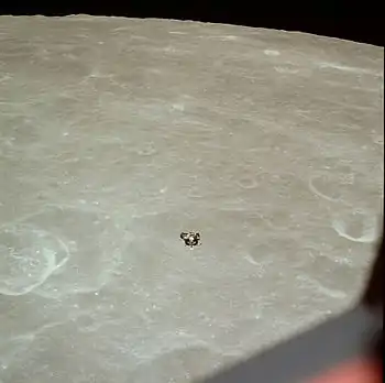 Командный модуль Аполлона-16 над сателлитным кратером Саха W.