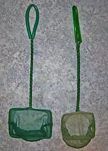 Для извлечения обитателей из аквариума используют маленький сачок, саковище которого обычно делается целиком из толстой проволоки.