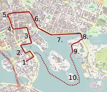 Молодожёны проехали по улицам Стокгольма в открытой карете. На их пути прошли двадцать музыкальных групп, 19 из которых были военными оркестрами. Над каретой пролетели 18 самолётов JAS 39 Gripen BBC Швеции. Викторию и Даниэля приветствовали около 250 тысяч человек, собравшихся в центре города. Затем на королевской яхте, на которой 34 года назад плыли король Карл XVI Густав и королева Сильвия,[18] они переправились на остров посреди озера Мэларен.
